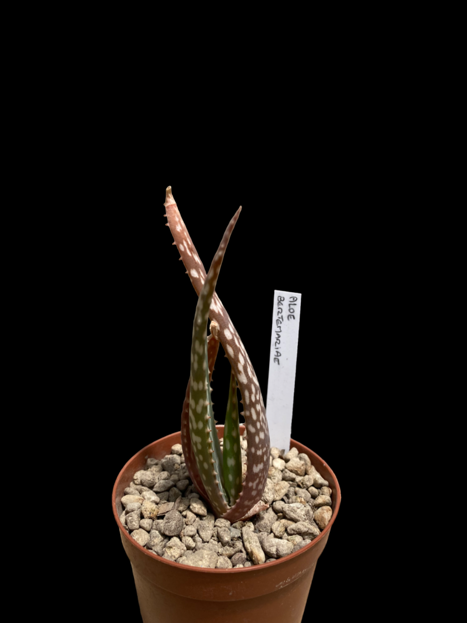 Aloe bertemariae pousse entre 300 et 400m d'altitude, dans la brousse d'acacia. C'est un Aloe acaule pouvant former de petits groupes. Il forme une rosette de feuilles gris-vertes tachetées avec des marges rouges. La floraison est rouge avec des pointes vertes.