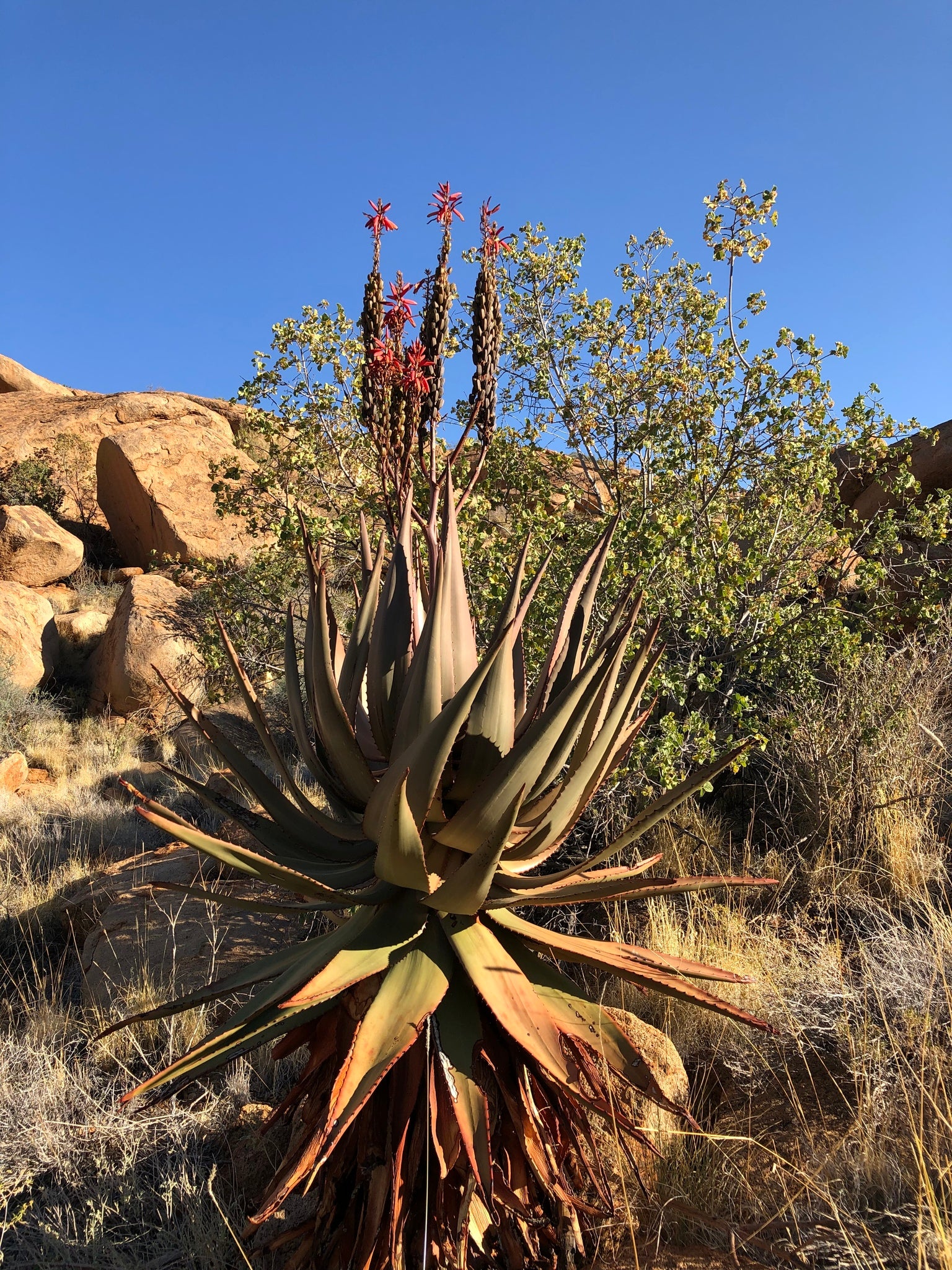 Aloe littoralis est un gros Aloe pouvant atteindre 4 m de haut. Poussant à des altitudes très variables entre 300 m et 1.300 m, Aloe littoralis s'est acclimaté et a largement développé sa population qui s'étend sur la plupart des pays d'Afrique australe... La floraison est en épi rouge très ramifié.