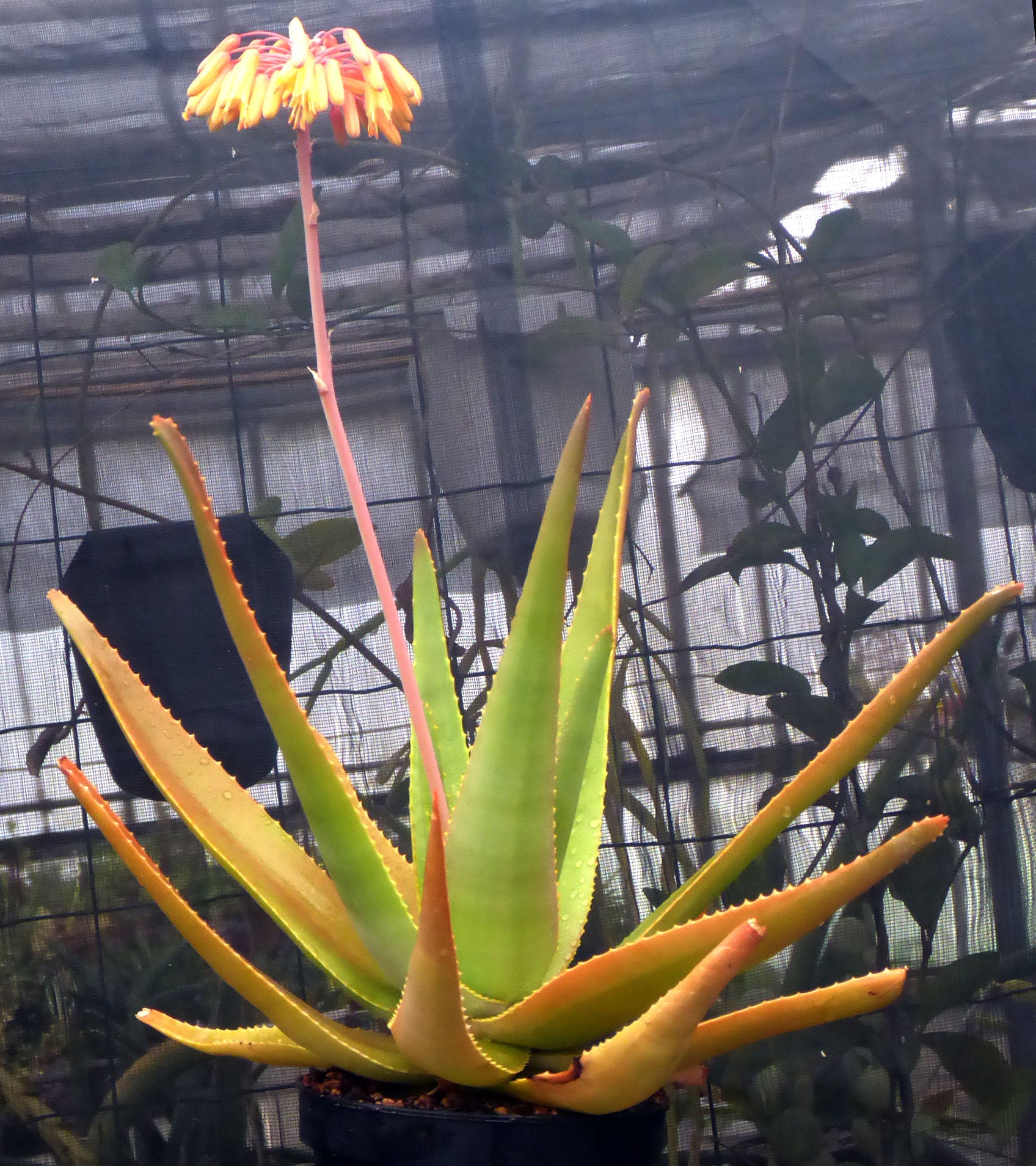 Aloe mitsioana pousse uniquement sur l'ile Mitsio sur la côte nord-ouest de Madagascar. Il est assez proche de Aloe capitata par sa floraison en capitules jaunes orangées. Compte tenu de son origine, c'est un Aloe assez frileux...