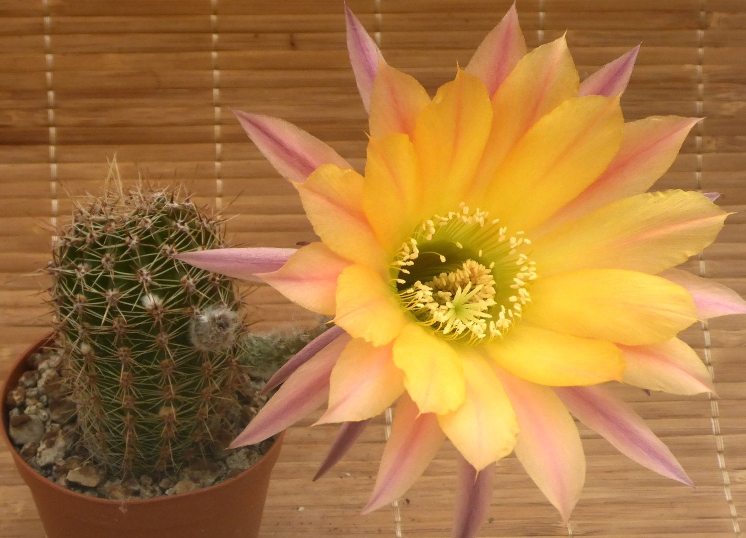 Echinopsis cv. Pooka est un superbe hybride d' Echinopsis au couleurs chaudes et lumineuses.