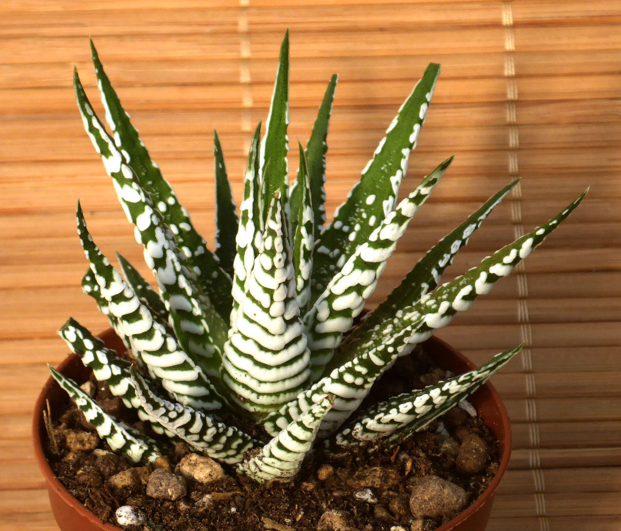 Haworthia fasciata 'Big Band' est une très jolie petite Haworthia issue d'une sélection horticole. Elle est très facilement reconnaissable par ces larges bandes blanches qui ornent les feuilles.