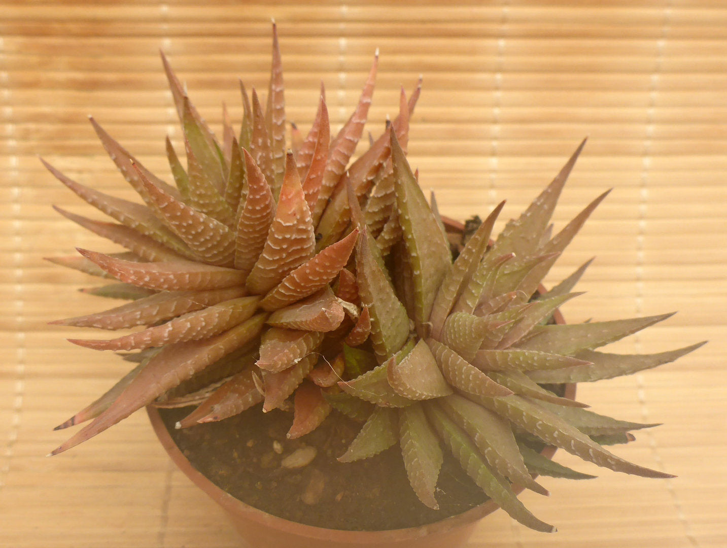 Haworthia limifolia var. schudtiana est une variété particuliere et très prolifique de Haworthia limifolia. Elle présente quelques striures blanches sur ses feuilles (surtout l'envers).