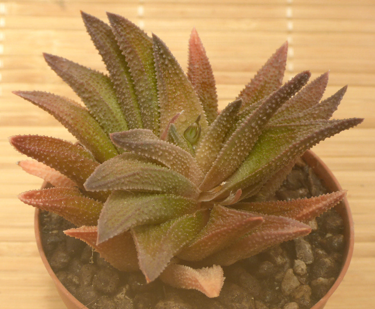 Haworthia pygmaea x Haworthia scabra est un hybride non nommé d'origine inconu. Il s'agit d'une belle Haworthia au port et a la texture des feuilles qui rappellent les 2 parents.
