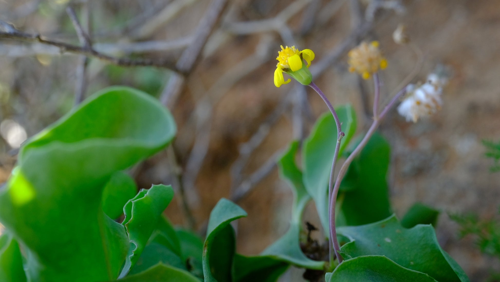 Othonna herrei est un petit arbuste à croissance extrèmement lente. Il pousse uniquement dans 4 stations en compagnie de Othonna retrorsa sur des pentes orientées Sud à Sud Est et affectionne les sols riche en quartz. La floraison est jaune.