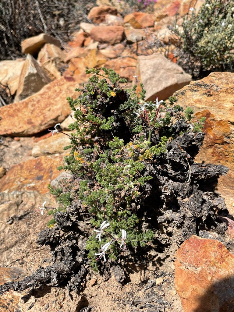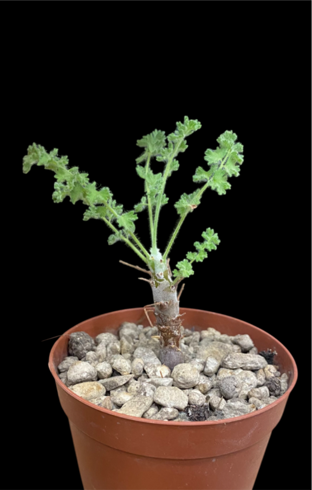 Pelargonium alternans est un petit arbuste très compact à feuilles caduques l'été, lors de sa dormance estivale lors de laquelle il doit être maintenu totalement au sec. Il peut mesurer de 40 à 50cm de haut, et il se prête très bien à la culture du bonsaï. Les fleurs blanches à rose très clair apparaissent de la fin de l’automne au début de l’été.